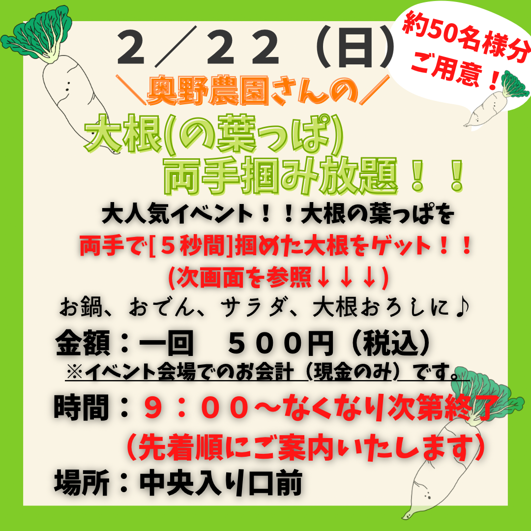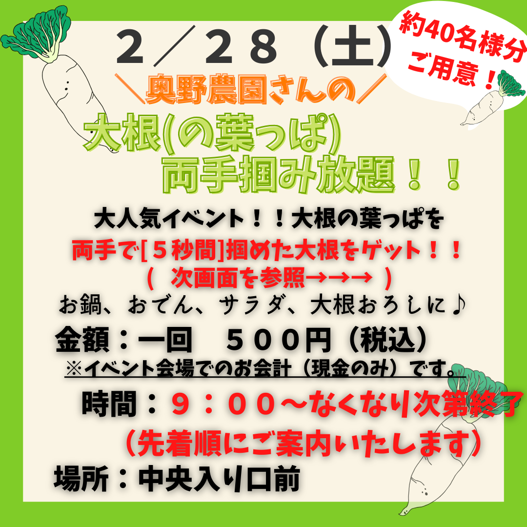 お得で楽しい野菜イベントを毎週9:00〜、開催しています(無くなり次第、終了)