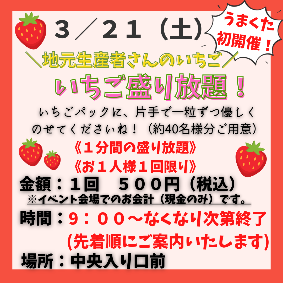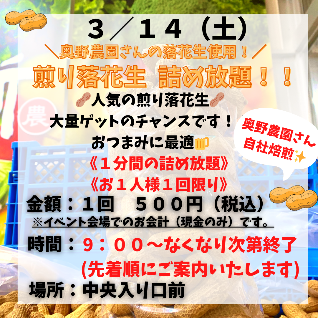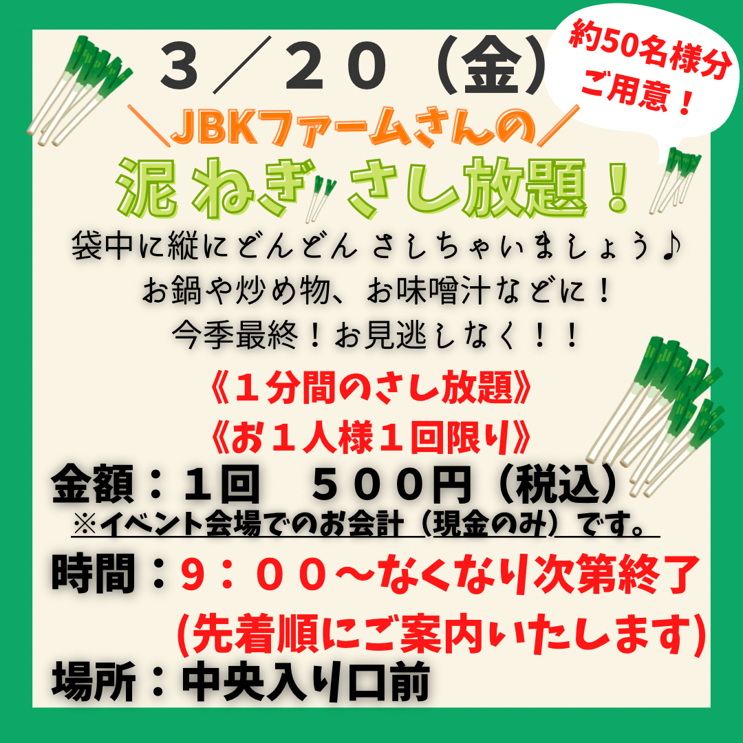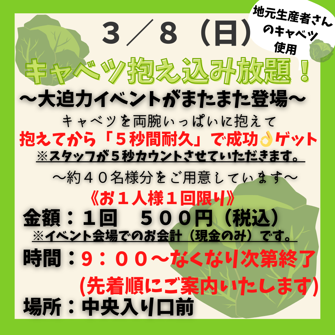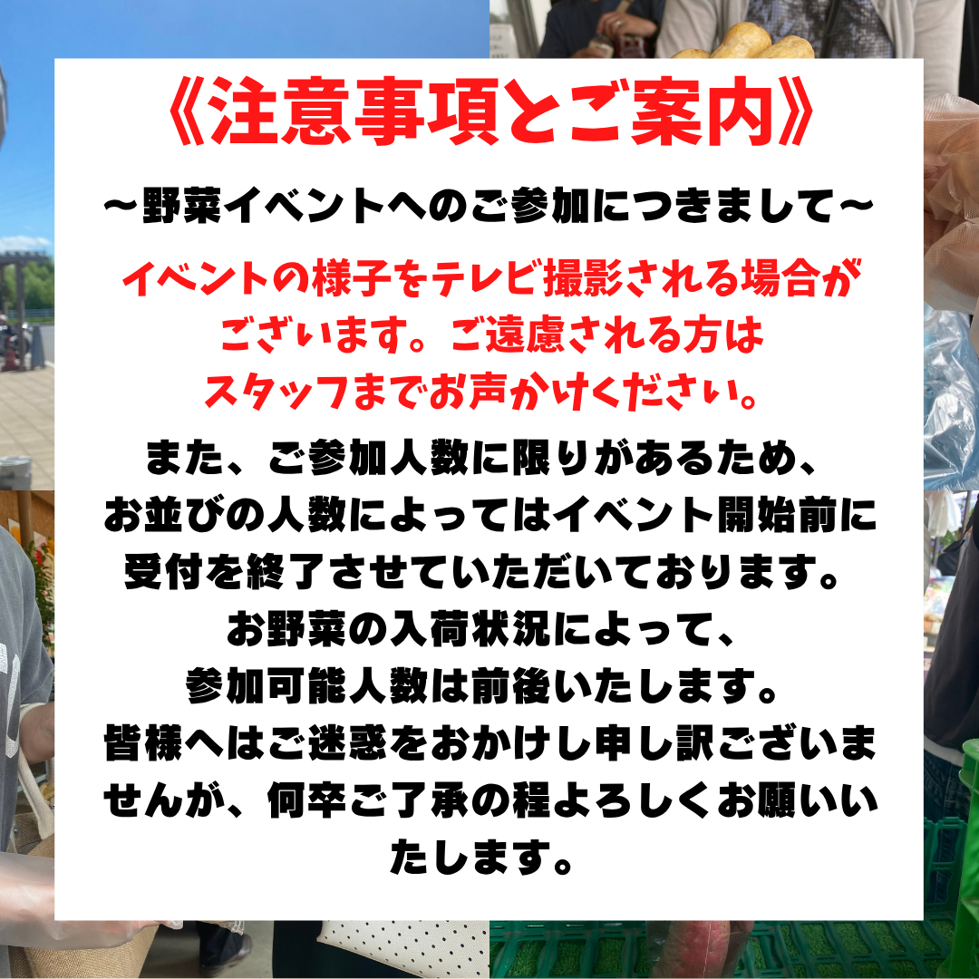 お得で楽しい野菜イベントを毎週9:00〜(無くなり次第終了)で開催しています!