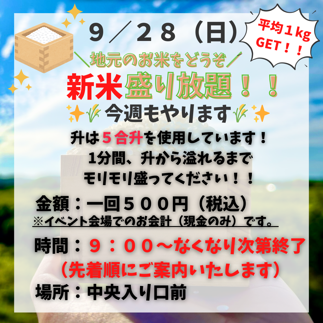 10/26(日) 新米盛り放題