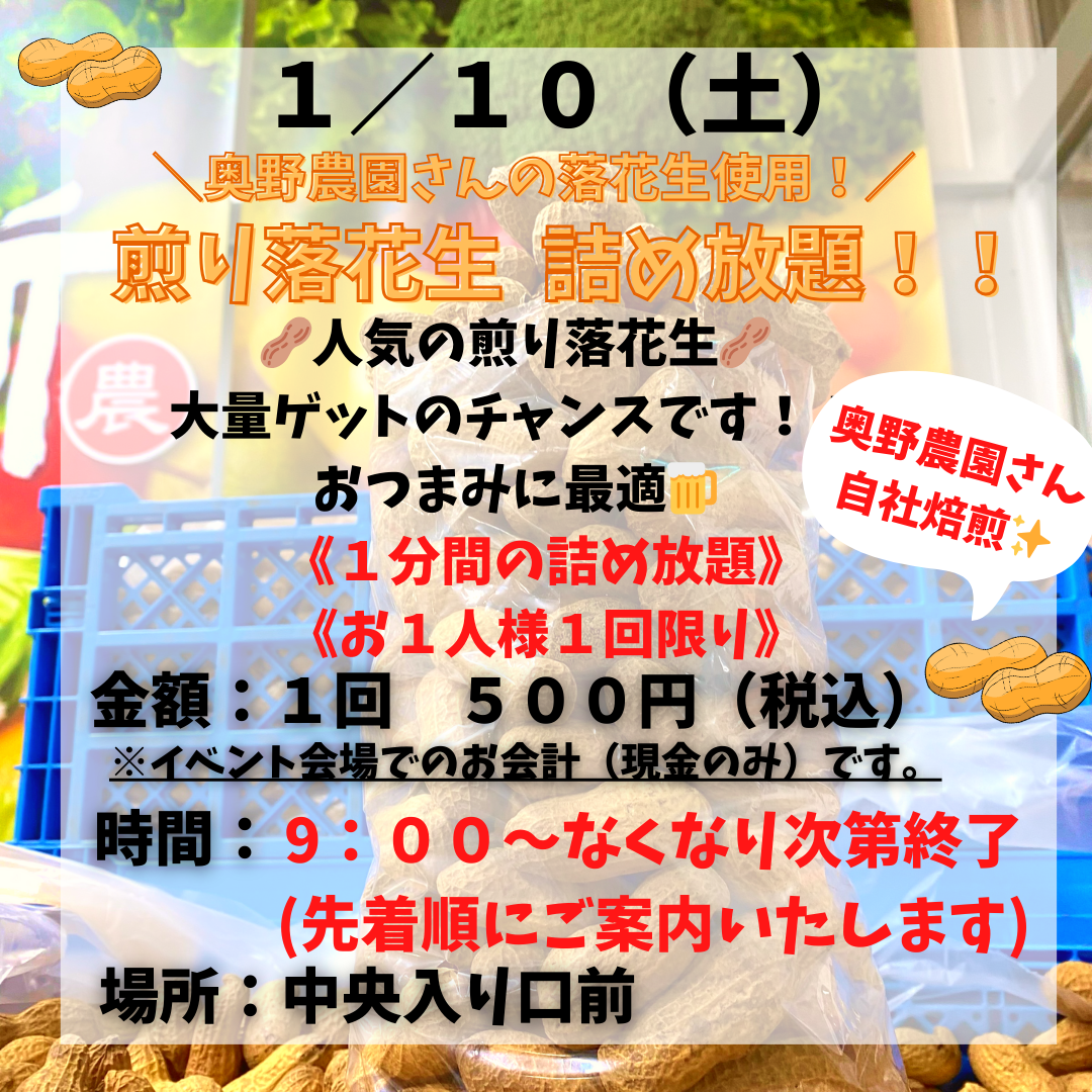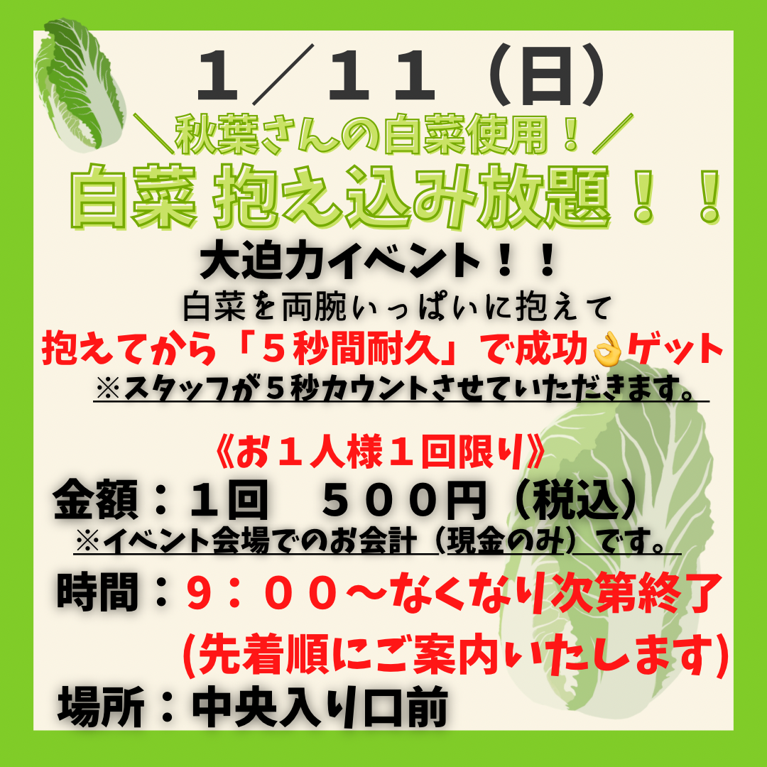 お得で楽しい野菜イベントを毎週9:00〜(無くなり次第終了)で開催しています!